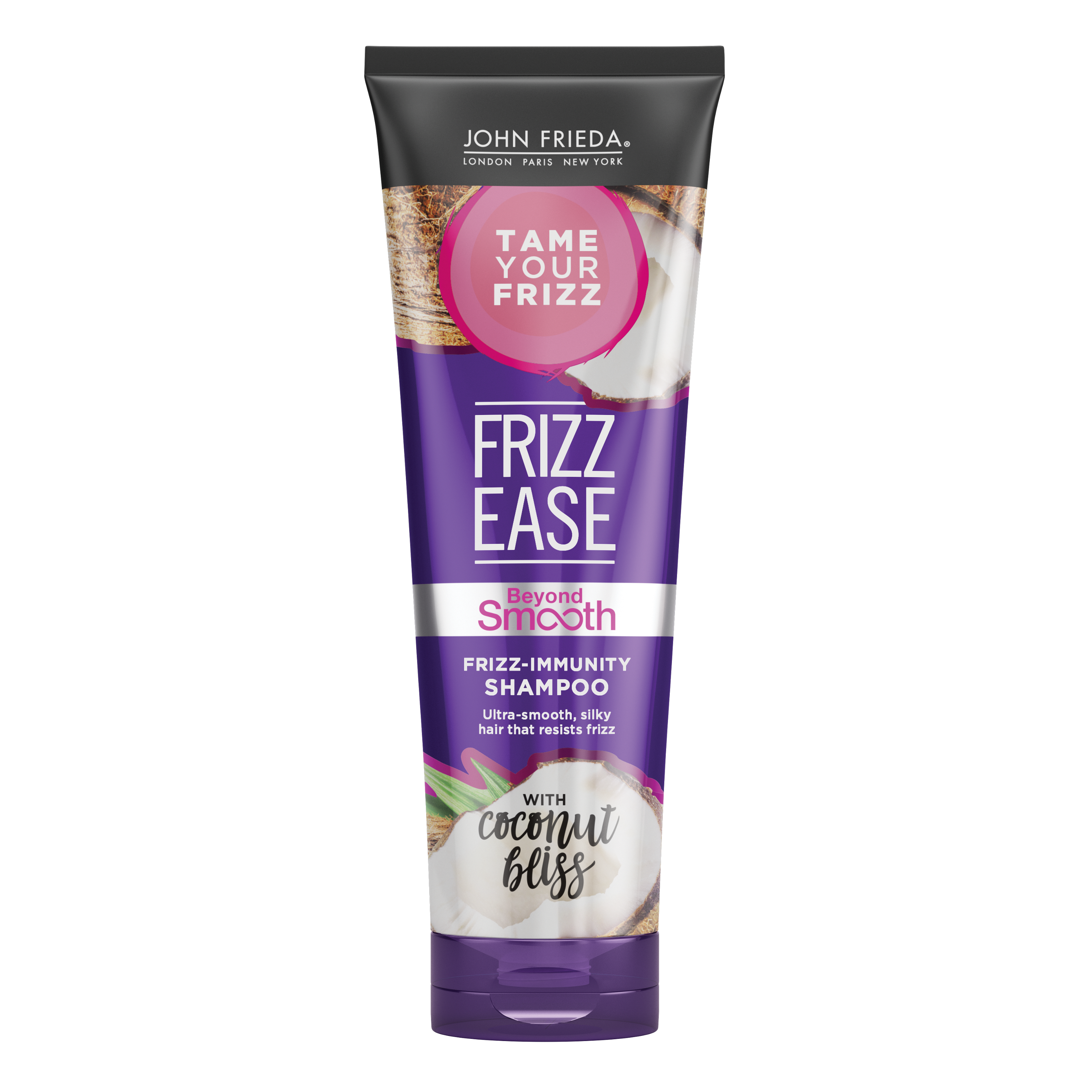 Champú John Frieda® Beyond Smooth: Poderoso agente antifrizz que penetra las fibras del cabello ayudando a combatir la porosidad de aquellos con frizz, generando una barrera interna e inmunidad a este problema que aqueja a muchas. Combínalo con el acondicionador para obtener un cabello notablemente más lacio con el uso continuo.