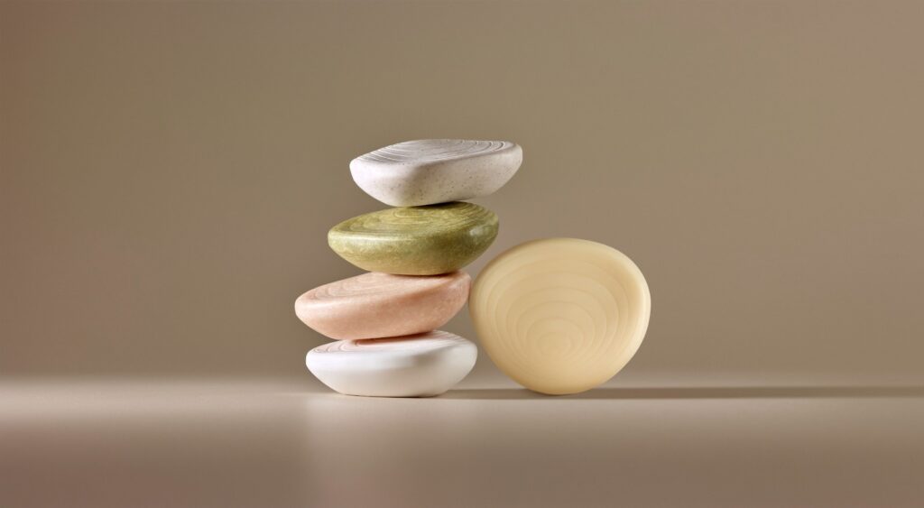 El portafolio de Biōme incluye el Shampoo de Uso Diario en barra (elegido Producto del Año 2024 POY), Acondicionador en barra, Jabón Cremoso en barra para cuerpo, Jabón Exfoliante en barra para cuerpo, Shampoo Hidratante en barra, el Accesorio para barras de biorresina y nuestro nuevo lanzamiento: el Jabón de Rostro en barra.